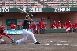 初回に先頭の真島が二塁打で出塁するも後続が続かず無得点に終わる。