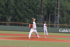 本日の先発は村濱選手。近々の大会・オープン戦では好投を続けており強豪相手にどんなピッチングをするか期待が高まった。初回はヒットを打たれ2死1.2塁のピンチの場面を作るも相手を打ち取り初回は0点で切り抜けた。しかし2回裏まさかの被弾を浴び先制を許す。